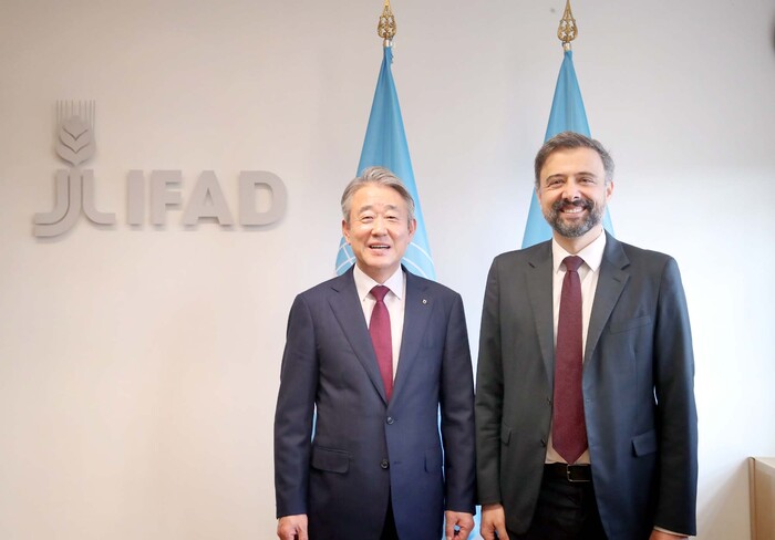 농협중앙회는 강호동 회장이 9일(현지시각) 이탈리아 로마에서 알바로 라리오 국제농업개발기금(이하 IFAD) 총재와 만나 양 기관 간 협력 방안에 대해 논의했다고 밝혔다.