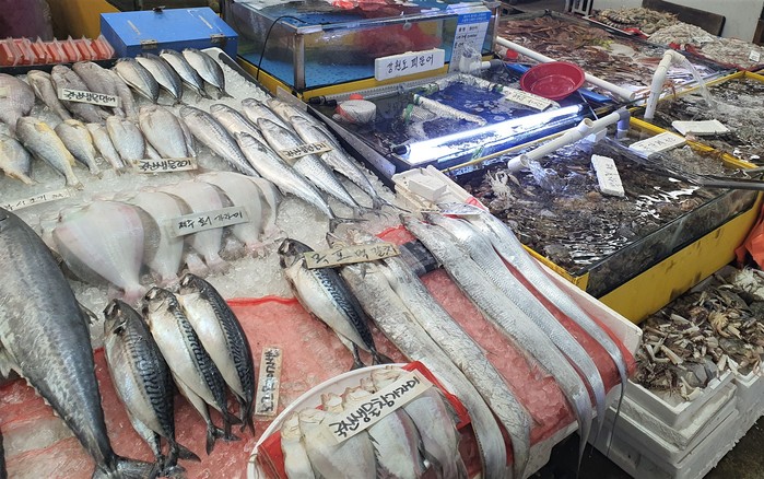 | ▲수원시농수산물도매시장 상가에 배치된 수산물.(수원시 제공) |