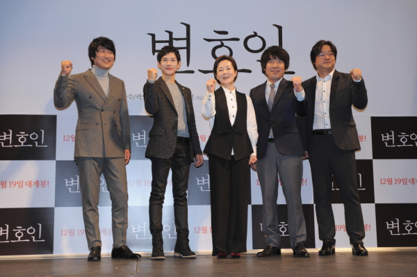 영화 <변호인>의 주연은 최근 <설국열차>와 <관상> 등을 통해 흥행 돌풍을 일으킨 국민배우 송강호가 주인공 송우석 역을 맡아 진폭이 큰 열연을 선보인다. 또한 7년 전 신세진 밥값을 잊지 않고 다시 찾아온 송우석을 꼭 안아주는 국밥집 아주머니 역에 김영애, 그녀의 아들 진우 역에 임시완, 그리고 바빠진 변호사 사무실의 살림을 도맡는 사무장 동호 역에 오달수가 송강호와 연기호흡을 맞춘다.