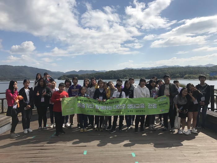 | ▲‘대청호 예술가와 함께 산책하는 환경·예술체험’을 테마로 한 코스에 참가한 학생들. |