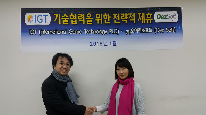 IGT에 따르면 23일 아시아 태평양 지역 사업 개발 담당 바네사 챈(Vanessa Chan) IGT 부사장과 오이지소프트 지승훈 대표는 마포구 서교동 소재 오이지소프트 본사에서 전략적 제휴를 맺고 기획재정부 복권위원회의 4기 복권 수탁사업자 선정 입찰에 공동으로 참여하기로 했다.