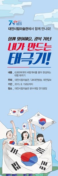 ‘함께 맞이해요, 광복 70년’은 시립미술관 앞 잔디광장에 마련한 대형태극기(24.5m x 15m) 밑그림에 6000여개의 바람개비를 관람객이 직접 꽂아 태극기를 만드는 행사로서 ‘한국근현대미술특별전’을 관람한 시민들에게 참여의 기회를 제공한다.