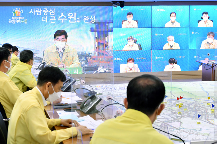 이날 회의에는 조청식 수원시 제1부시장, 조무영 제2부시장 등 공직자와 김지훈 수원시의사회장, 수원 남부·중부·서부경찰서, 수원소방서·수원남부소방서 등 유관기관 관계자 등이 참석해 코로나19 대응 상황을 종합적으로 점검했다.