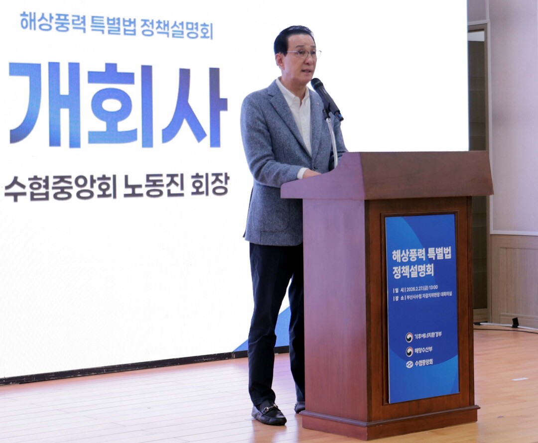노동진 수협중앙회장 “특별법 시행으로 해상풍력 개발이 정부 주도의 계획입지 체제로 전환된다고 하나, 세부 사안이 고시로 위임되며 현장에서는 여전히 우려의 목소리가 존재한다”