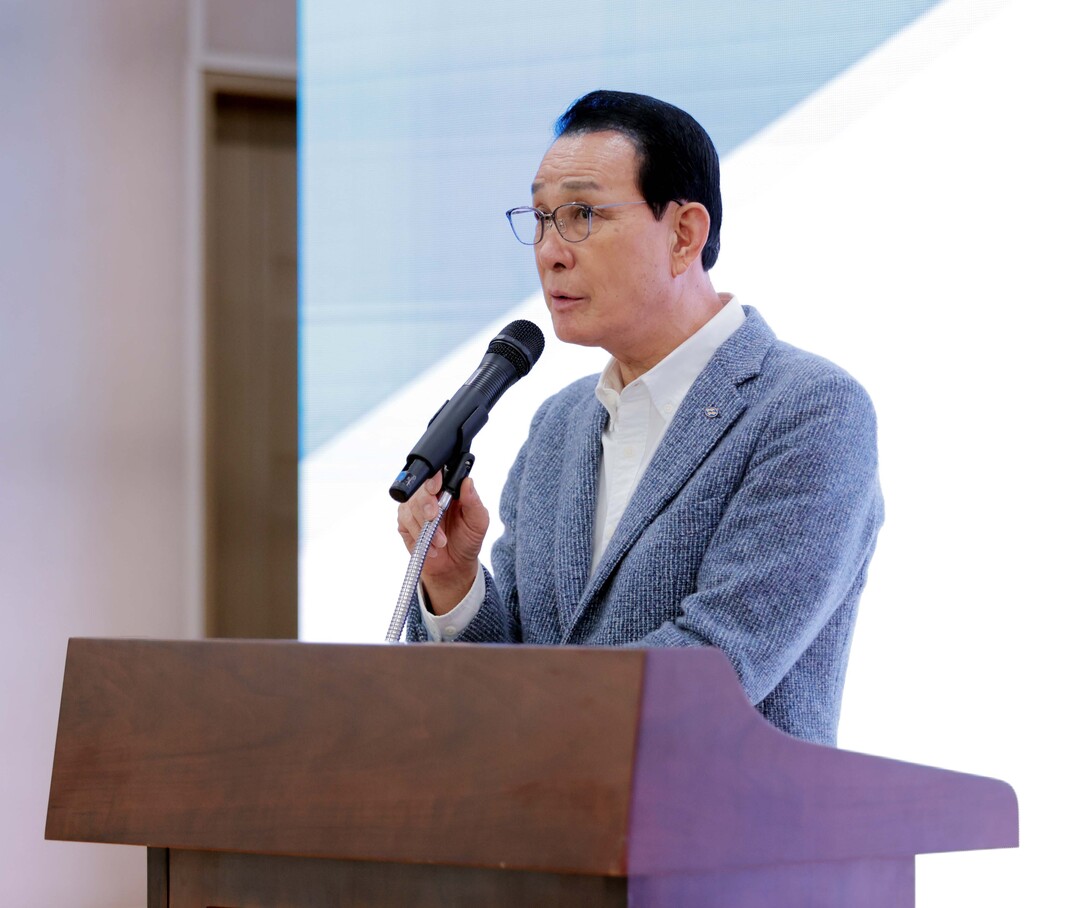 27일 노동진 수협중앙회장이 부산시수협 자갈치위판장에서 열린 '해상풍력 특별법 정책설명회'에서 개회사를 하고 있다. 노 회장은 이날 전국 수협 조합장들과 해상풍력 개발 전 과정에 어업인의 참여를 보장하는 구체적인 기준을 제도적으로 마련해 줄 것을 정부에 촉구했다.