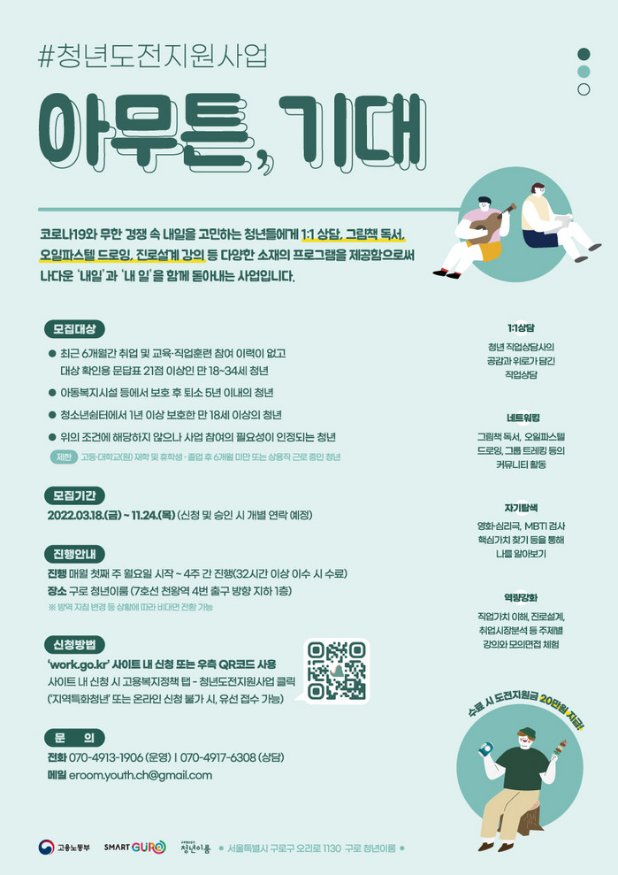 구 관계자는 “이번 사업이 코로나19로 위축된 청년의 마음에 힘과 용기를 줄 수 있는 기회가 되길 바란다”며 “청년이 자기 자신을 이해하고 취업역량을 키워 건강하게 사회에 진출할 수 있도록 대상자 모집에 유관기관의 동참을 당부드린다”고 전했다.