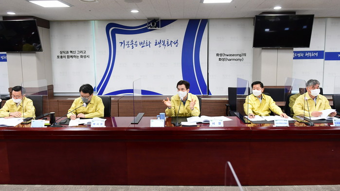 [로컬세계 고용주 기자]경기 화성시는 12일 중앙재난안전대책본부의 사회적 거리두기가 1단계로 하향 조정됨에 따라 시청본관2 상황실에서 서철모 화성시장 주재의 재난안전대책본부 긴급대책회의를 열고 공공시설 운영재개 및 방역 관련 후속조치 계획에 대해 논의했다.