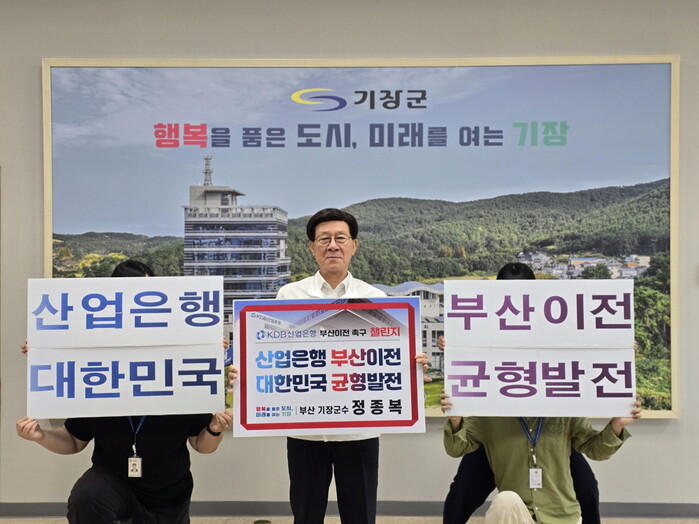 이날 정 군수는 군 직원들과 함께 카드섹션의 방식으로 챌린지를 진행하면서 지역 균형발전을 위한 산업은행 부산 이전에 강한 의지를 표현했다.
