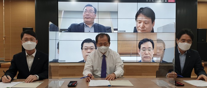 | ▲농협중앙회 이규삼 감사위원장(가운데)은 29일 서울시 중구 농협 본관 스마트워크센터에서 계열사 현장감사 진행상황을 화상으로 점검했다. 농협중앙회 제공 |