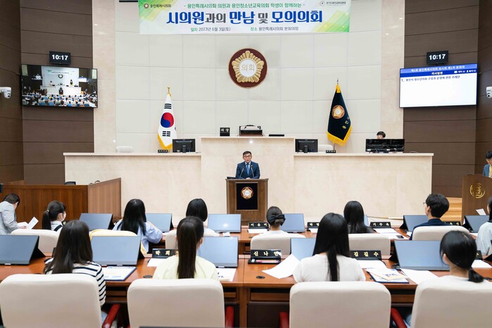 [로컬세계=고기훈 기자]경기 용인특례시의회(의장 윤원균)는 3일 ‘용인청소년교육의회 학생과 함께하는 모의의회’를 개최했다고 밝혔다.