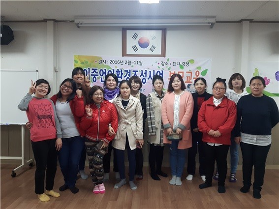 ▲부모교육을 받은 결혼이주여성들이 기념촬영을 하고 있다. |