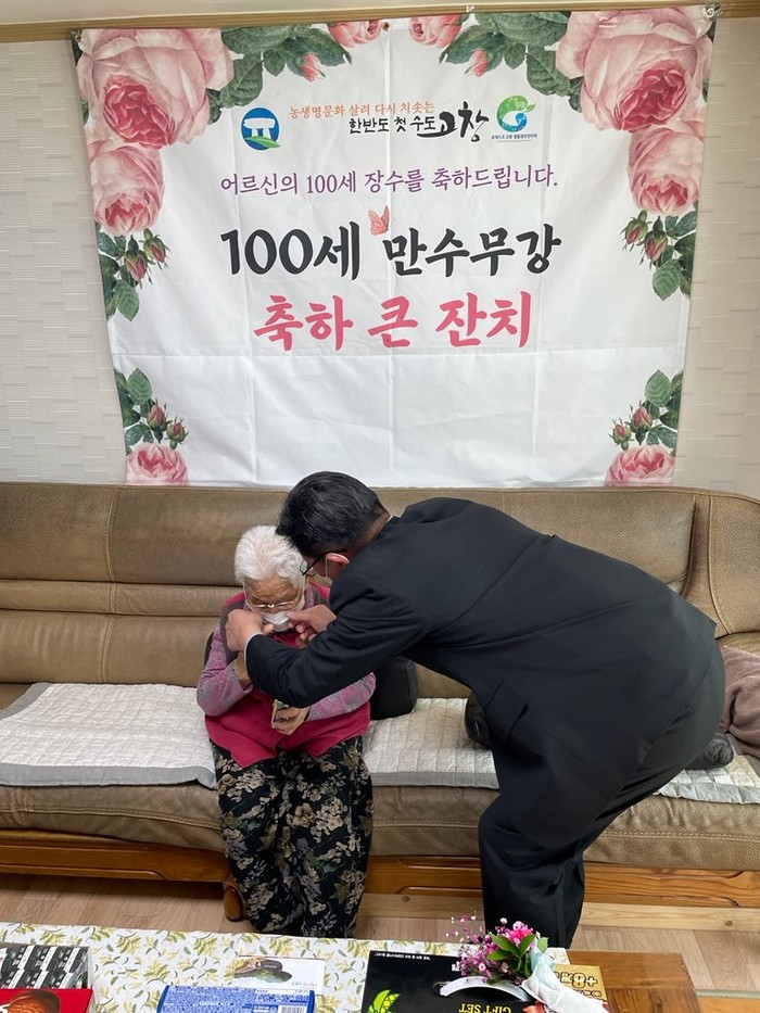 앞서 고창군은 ‘100세 어르신 만수무강 축하 잔치’를 진행하고 있으며 2019년부터 총 33명(2019년 4명, 2020년 16명, 2021년 13명) 어르신의 축하 자리를 마련했다.