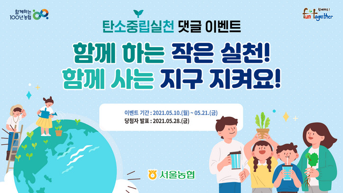 더불어 서울농협 공식 페이스북에서는‘함께 하는 작은 실천! 함께 사는 지구 지켜요!’이벤트를 이달 21일까지 진행한다.