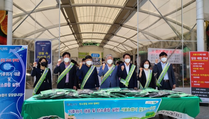 이대엽 서울지역본부장은 “정부의 2050 탄소중립 정책에 부응하고 서울농협의 사회적 역할을 실천하기 위해 오늘 캠페인을 준비했다”면서 “앞으로도 우리 서울농협은 탄소저감과 생활 속 그린뉴딜을 실천하기 위해 앞장서겠다”고 말했다.