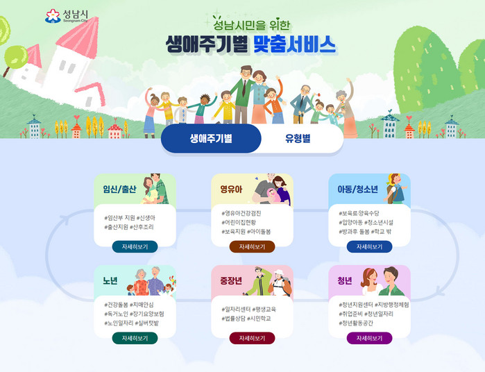 | ▲'성남시민 맞춤 복지' 웹페이지 생애주기별 화면 캡처. |