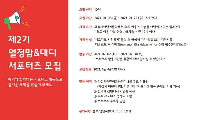 ▲제2기 열정맘&대디 서포터즈 모집 홍보물.(화성시 제공) |