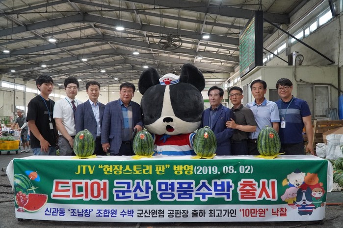 전북 군산원예농협은 6일 공판장에서 진행된 새벽 경매에서 신관동 조남창 조합원의 수박이 1통에 10만원으로 낙찰됨에 따라 ‘드디어 군산 명품수박’이 탄생했다고 밝혔다.
