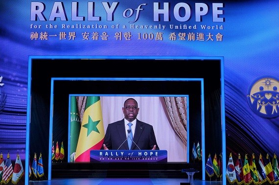 이어 등장한 마키 살 세네갈 대통령도 기조연설에서 “코로나바이러스가 존재하는 이런 때일수록 그 위협을 해결하기 위해서는 천주평화연합이 보여주듯 상호협력과 인류애를 통해 위기를 극복할 수 있다”며 “세계가 하나가 되고 코로나19 시대 이후의 세계가 모두를 위한 보다 나은 세계가 될 수 있도록 금번 희망전진대회를 지지하며 참석자 모두에게 경의를 표한다”고 힘주어 말했다.