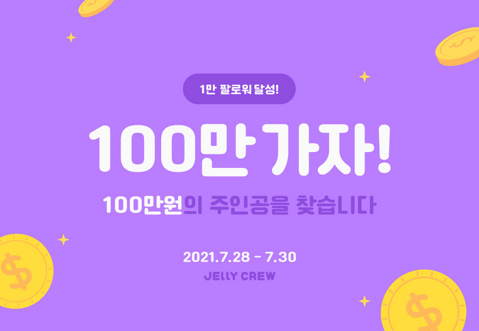 | ▲인스타그램 팔로워 1만명 돌파 기념 100만원 지급 이벤트 진행 이미지 [젤리크루 제공] |