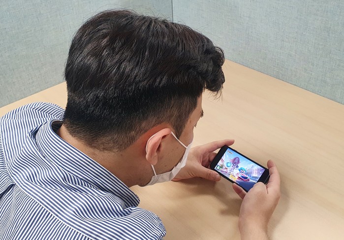 ▲한 직장인이 스마트폰을 들고 게임에 열중하고 있다. |