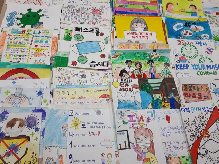 ▲수성구 지역아동센터의 아동들이 코로나 대응을 주제로 그린 그림 사진.(수성구 제공) |