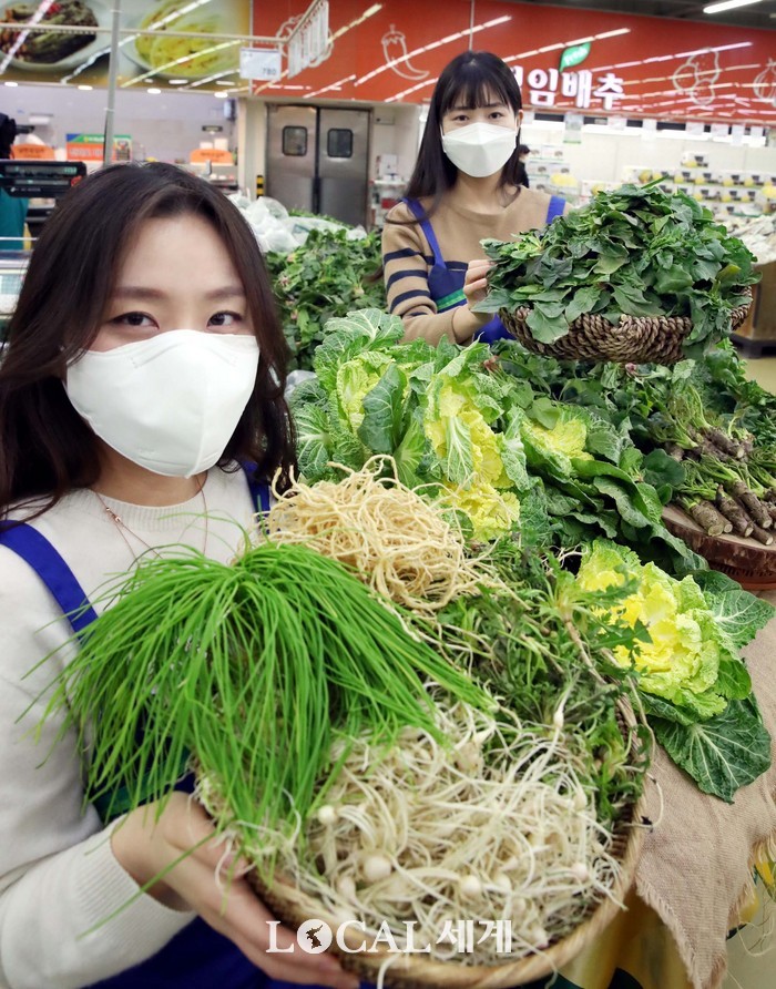 12일 서울 서초구 농협 하나로마트 양재점에서 모델들이 겨울철 입맛을 돋울 수 있는 다양한 봄나물을 선보이고 있다. 농협유통은 13일부터 16일까지 4일간 양재점에서 대표적인 봄나물인 봄동, 달래, 냉이, 돗나물 등 다양한 나물을 한곳에 모아 '한 겨울 속 봄향기'라는 주제로 봄나물 모음전을 진행한다.