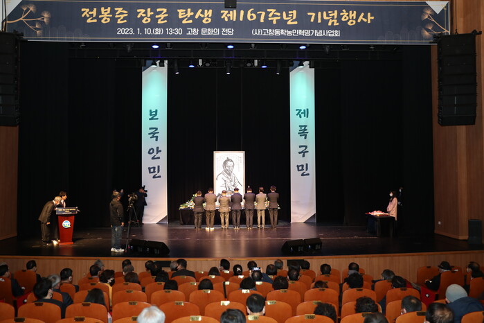 [로컬세계=김경락 기자]전북 고창동학농민혁명기념사업회(이사장 진윤식)가 10일 오후 고창문화의전당에서 ‘전봉준 장군 탄생 제167주년 기념행사’를 열었다.