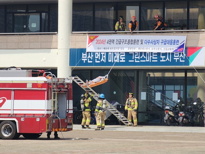 [로컬세계 부산=맹화찬 기자]부산 해운대소방서는 지난 29일 오후 2시 해운대구 우동 소재 수영만 요트경기장에서 2024년 4권역 긴급구조종합훈련 및 다수사상자 대응훈련을 실시했다고 30일 밝혔다.