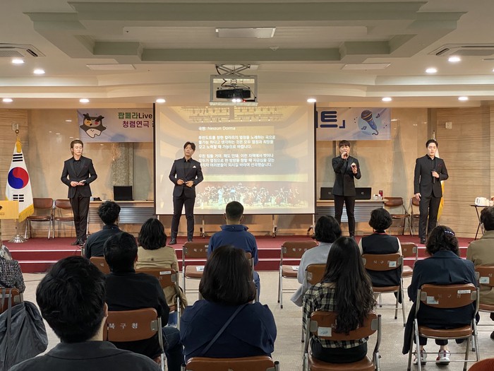청렴콘서트는 기존의 정형화된 일방적 강의를 벗어나, 북구의 청렴 문화 확산을 응원하는 내용의 ‘남성 4중창단 팝페라 공연’과 직원들의 공감을 이끌어내는 사례 기반의 청렴연극 ‘청렴의 신과 함께’가 결합된 공연형 교육으로 구성됐다.