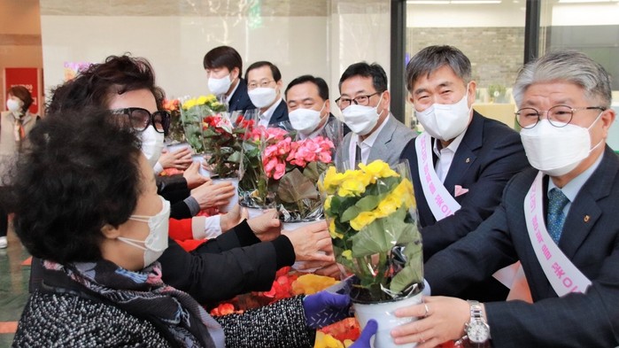 이날 행사는 코로나19로 인한 화훼 수요 감소로 어려움을 겪고 있는 화훼농가를 지원하고, 봄을 맞이하여 금융거래를 위한 내점고객들에게 감사의 마음을 전하고자 실시했다.