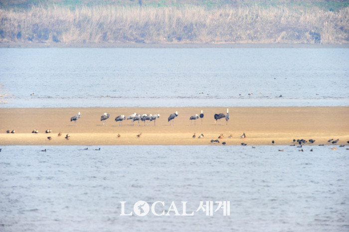 [로컬세계 한차수 기자] 세계적인 철새도래지인 금강 일원에 천연기념물 제228호 및 멸종위기야생동식물 II급으로 지정된 흑두루미(영명 : Hooded Crane)를 비롯해 가창오리(영명 : Baikal Teal) 등 철새들이 몰려들고 있다.