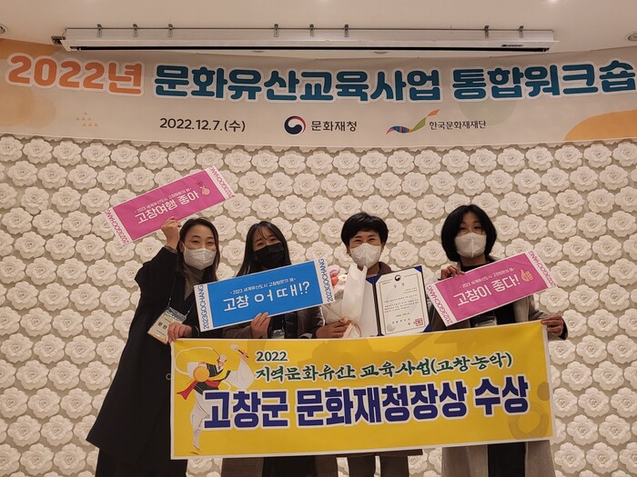 [로컬세계=김경락 기자]전북 고창군이 지난 7일 문화재청이 주최한 ‘2022년지역문화유산 교육사업’ 평가에서 우수기관으로 선정돼 문화재청장상을 수상했다.