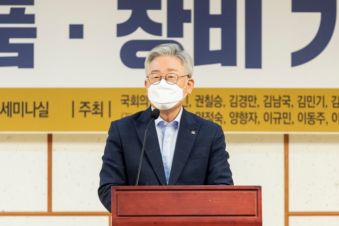 | ▲이재명 지사가 23일 국회의원회관에서 열린 ‘경기도 소부장산업 육성방안 토론회’에서 발언을 하고 있다.(경기도 제공) |
