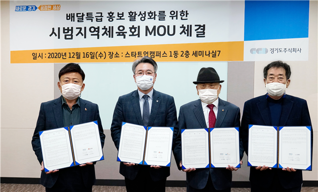 경기도주식회사는 16일 3개 시범지역 체육회와 ‘배달특급 홍보 활성화’를 위한 업무협약을 체결하고 향후 공동으로 ‘배달특급’ 알리기에 적극 나서기로 했다고 17일 밝혔다.