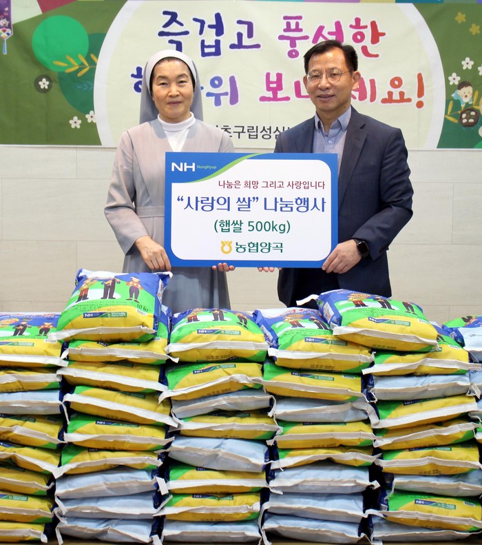 지난 5월 쌀 1,000kg을 기부하며 성심노인복지센터와 연을 맺은 농협양곡은 이번 행사에서 대표이사를 포함한 임직원들이 직접 센터를 방문해 햅쌀(10kg) 50포를 전달했다.