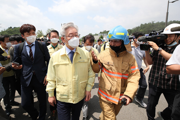 이재명 지사는 이날 자신의 사회관계망서비스(SNS)에 ‘원인은 신속하게 파악하고, 책임은 끝까지 따지겠습니다’란 제목의 글을 게재하고 사고 소식과 함께 화재 진압 상황을 전했다.