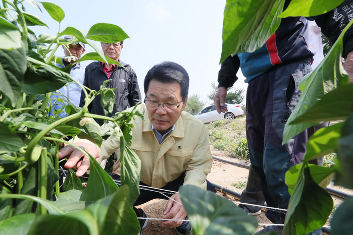 이날 방문한 사업장은 기존의 고추 터널 재배와 달리 부직포를 활용해 고추를 조기 정식하는 기술로 곁가지를 제거하지 않고 초기 생육기간을 늘려 고추를 다수확하는 재배법이다.