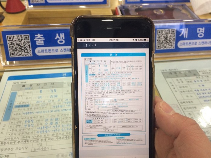 민원 신청 서식의 작성예시를 담은 QR코드를 스마트폰으로 스캔하면 올바른 작성 예시를 즉시 봐가면서 어디든 작성할 수 있고, 시간도 절약되는 이점이 있다.