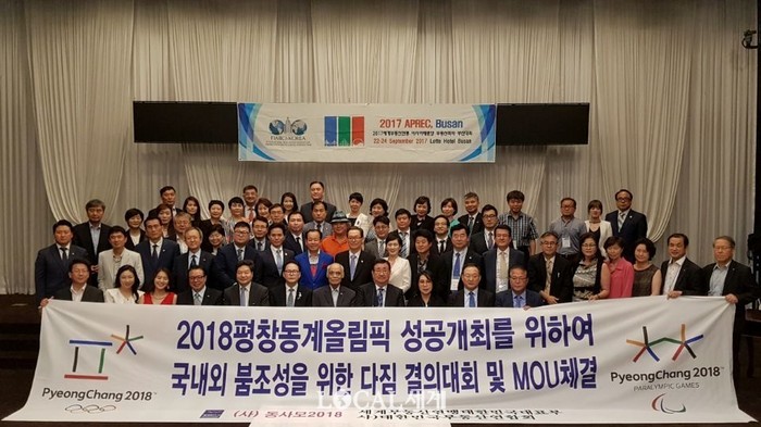 | ▲3일 지태용 회장은 2018 평창동계올림픽 성공개최를 위해 동사모 2018 이호경 이사장과 국내외 붐조성을 위한 다짐 결의대회 및 MOU 체결식을 가졌다. |