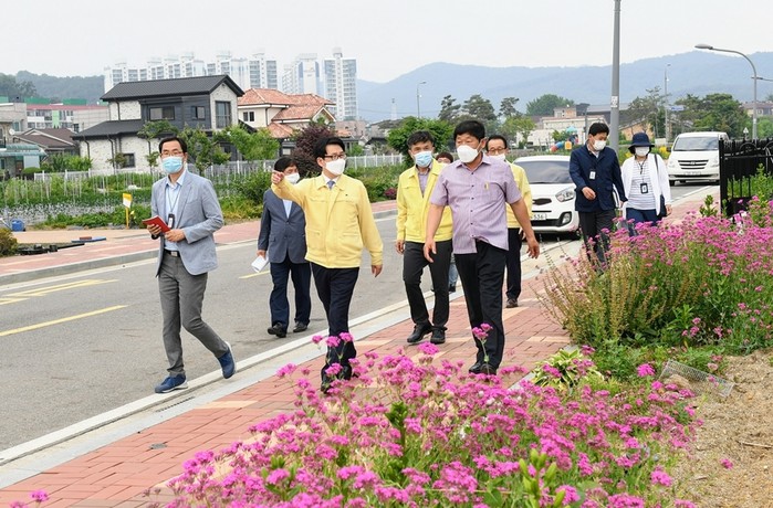 이날 최종환 시장은 법원읍 가야4리 마을정원 현장을 방문해 정원을 둘러보고 마을 주민의 의견을 청취하는 시간을 가졌다. ‘법원읍 가야4리 마을정원’은 지난 2016년 마을공동체 정원만들기 사업에 참여한 이후 5년째 정원 보식과 가꾸기 등 주민참여형 마을공동체 정원만들기 사업을 진행하고 있다.