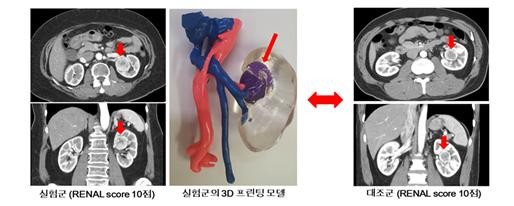 이에 연구팀은 3D 프린팅 기술을 통해 신장과 암 조직의 형태를 3차원으로 재현한 콩팥 모형을 수술 난이도가 높은 복잡성 신종양의 로봇수술에 활용하고, 그 효용성을 평가하기 위한 연구를 세계 최초로 진행했다. 이를 위해 2018년 12월부터 2019년 11월까지 약 1년간 로봇 수술을 받은 신장암 환자 80명을 실험군과 대조군으로 나눴다. 실험군 40명은 3D 프린팅 신장 모형을 이용해 종양의 위치와 주변 혈관을 실시간으로 파악하면서 수술한 환자들이었고, 대조군 40명은 일반 로봇수술을 받은 환자들이었다.