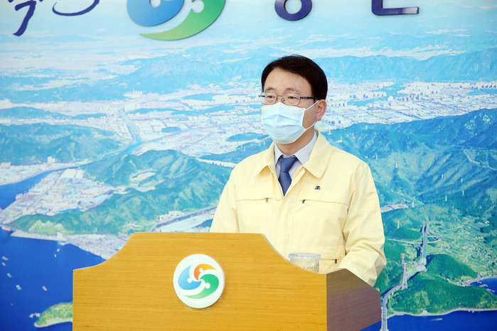 ▲조영진 제1부시장이 19일 긴급브리핑을 갖고 있다.(창원시 제공) |