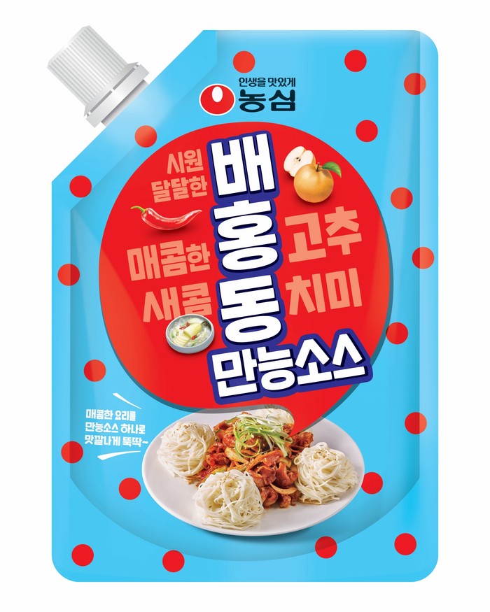농심이 배홍동비빔면의 인기에 힘입어 ‘배홍동 만능소스’를 출시한다. 배와 홍고추 동치미로 매콤한 맛을 낸 배홍동비빔면의 소스를 별도로 담은 제품이다.