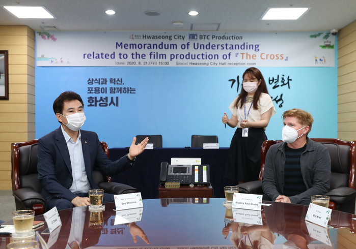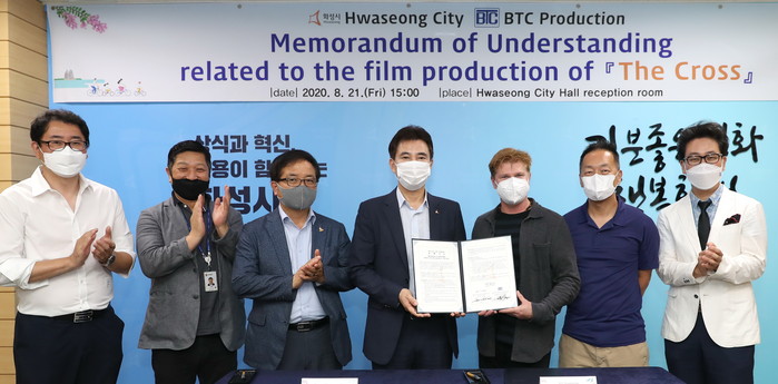 화성시는 BTC 프로덕션과 블루칩 ENM이 제작 준비 중인 영화 더 크로스의 제작지원을 위해 21일 시청 접견실에서 양해각서를 체결했다고 밝혔다.