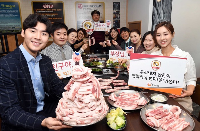 | ▲한돈자조금관리위원회가 회식과 송년회 등 단체모임이 많은 연말을 맞아 국민들의 즐거운 모임을 지원하고 한돈 소비를 촉진하기 위해 ‘연말 회식 한돈이 쏜다! 쏜다! 쏜다!’ 이벤트 진행 모습.(한돈자조금 제공) |
