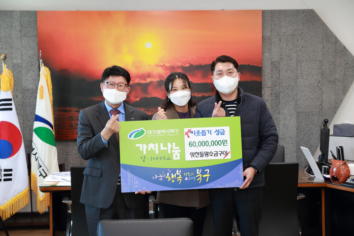 [로컬세계 박세환 기자]대구 북구는 지난 6일 이동관 맛찬들왕소금구이 대구본점 대표가 구청을 방문해 북구 저소득층을 위한 성금 6000만원을 기탁했다고 7일 밝혔다.