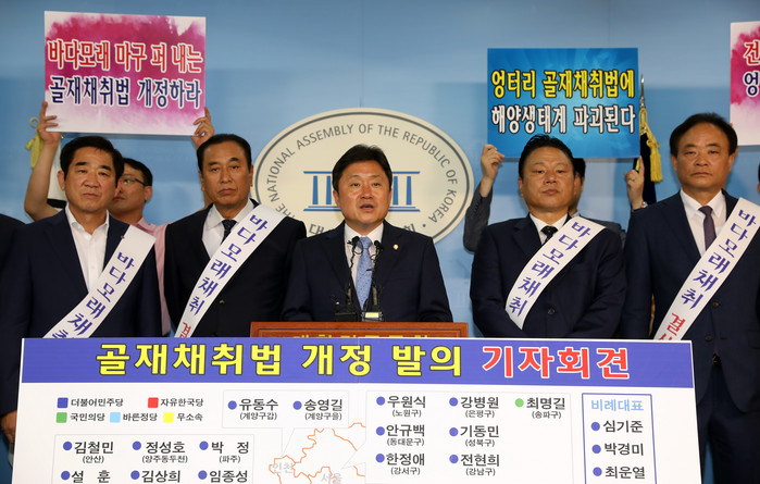 이날 국회 정론관에서 기자회견에 나선 최인호 의원은 “우리나라 경제주체 가운데 그 누구도 자신들의 이익을 위해 바다를 파괴할 권리를 갖고 있지 않으며, 국민 모두가 후손들을 위해 바다를 지키고 보존해야 한다”고 전제한 뒤 “무분별한 바다모래 채취로 인한 해양환경 훼손과 수산자원 감소를 방지하고 해역이용영향평가가 합리적으로 이루어질 수 있도록 현행법을 개정한다”고 개정안 발의 취지를 설명했다.