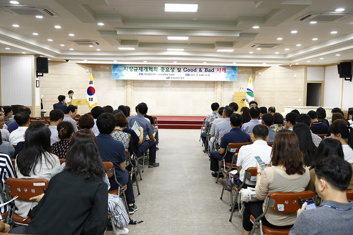 북구청은 2014년부터 해마다 규제개혁 특강을 개최했다. 지난 강의는 규제개혁 마인드 제고를 위한 개념 위주의 교육이었다면, 이번 강의는 정부 규제개혁부서 총괄팀장을 지낸 전문가를 초청해 지방규제개혁 중요성 및 Good & Bad 사례위주로 강의를 했다.