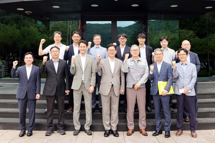 ▲고광효 관세청장(가운데)이 9일 대구 달성군에 소재한 대구텍(유)를 방문하여 기념 촬영하고 있다. 관세청 제공 |