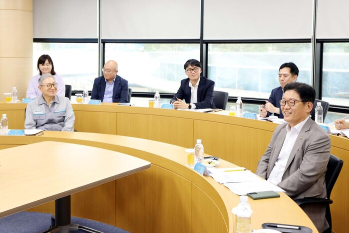 ▲고광효 관세청장(오른쪽)이 9일 대구 달성군에 소재한 대구텍(유)를 방문하여 업계 애로사항을 청취하고 있다 |